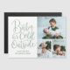 Tarjetas de foto personalizado magnéticas de vacaciones asequibles con plantillas sencillas para la personalización. Este bonito diseño invernal tiene una tipografía de estilo con letras a mano en verde sabio con 3 de sus fotos familiares personalizados. El mensaje dice "Baby It's Cold Outside" personalizado con el nombre de su familia y el año u otro texto personalizado. Utilice las herramientas de diseño para elegir cualquier color de fondo, editar los tipos de letra y los colores del texto, o agregar más fotos para crear una única de un diseño de tarjeta fotográfica de vacaciones.