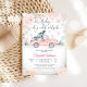Celebra con estilo con esta encantadora invitación de baby shower invernal que presenta un camión vintage rosa que lleva un árbol de Navidad a través de un paisaje invernal nevado. El diseño de acuarela combina copos de nieve festivos, acentos florales y escritura elegante para un toque acogedor de temporada. Perfecta para celebraciones invernales, esta invitación añade calidez y fantasía a tu día especial mientras destaca detalles clave con claridad. Una opción encantadora para futuros padres que aman temas rústicos, vintage e inspirados en las fiestas.