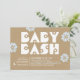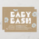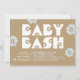 Baby Bash - Invitación de Baby Shower. Niño azul con flores sobre fondo de papel kraft.