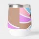 Vaca Adorable personalizada en un personalizado Kawaii bebiendo boba o té de burbujas. De fondo rosa, violeta, azul y marrón.