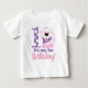 Este lindo diseño de camiseta para bebés muestra a nuestro perro cachorro rosa y morado con un número uno y las palabras "¡Es mi primer cumpleaños!" escritas debajo.