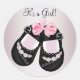 Adorables pegatinas de zapatos de bebé negros y rosados.