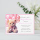 Invitación de baby shower de oso con lazo rosa. Ideal para es una niña.