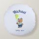 almohada redonda con oso lindo bebé con globo fiesta sobre fondo azul claro