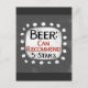 Un divertido diseño tipográfico que dice "Cerveza: puede recomendarse, 5 estrellas". Es texto en negro y rojo sobre un rectángulo blanco con puntos blancos divertidos y juguetones rodeándolo, todo sobre un fondo gris.