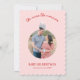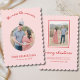Tarjeta de Navidad de Embarazo Bebé Rosa y Rojo en Camino. Personalice con dos fotos y su propio saludo personalizado.