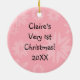 El primer personalizable de Navidades del bebé adorno de mantenimiento con una bebé durmiendo en un durmiente dormido y diseño suave de copo de nieve. Usted puede fácilmente personalizar este adorno con la foto del bebé y agregar su propio texto al fondo. Es grandioso como un regalo de primer Navidad y será un recuerdo en los años venideros.