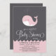Bebé rosado lindo ballena bebé invitaciones a duch