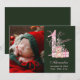 ¡Celebra la primera Navidad de tu bebé con esta reconfortante tarjeta de fotos de vacaciones! Con un oso de peluche con una suave acuarela, regalos festivos de color rosa, un árbol pastel y un espacio para destacar el nombre, la fecha de nacimiento, el peso y la altura de tu recién nacido, esta carta es el recuerdo perfecto para los nuevos padres orgullosos. El rico fondo verde del bosque y la acogedora distribución de fotografías lo convierten en un lugar clásico y encantador. Una obligación para las mamás sentimentales y los amantes de la magia navideña.
