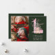 ¡Celebra la primera Navidad de tu bebé con esta reconfortante tarjeta de fotos de vacaciones! Con un oso de peluche con una suave acuarela, regalos festivos de color rosa, un árbol pastel y un espacio para destacar el nombre, la fecha de nacimiento, el peso y la altura de tu recién nacido, esta carta es el recuerdo perfecto para los nuevos padres orgullosos. El rico fondo verde del bosque y la acogedora distribución de fotografías lo convierten en un lugar clásico y encantador. Una obligación para las mamás sentimentales y los amantes de la magia navideña.