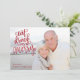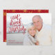 Tarjeta fotográfica navideña personalizada con tipografía escrita a mano. El diseño presenta un texto superpuesto, con letras a mano en caligrafía roja, que dice "Come y sé moro". La plantilla está preparada para que usted añada su propia foto - tome una que no esté demasiado ocupada en el lado izquierdo. También puede añadir su mensaje, nombre(s) y año(s), o lo que desee, al final. En la parte posterior, la tarjeta tiene copos de nieve dorados en un fondo rojo que hace juego. Por favor, busque en nuestra tienda formatos y diseños alternativos.