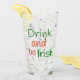 Un encantador vaso de vidrio "Bebe y sé irlandés" con una fuente verde y roja. Personaliza con tu nombre, imagen, etc.