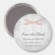 Elegante y simple imán Save The Date con una libélula rosa sobre un fondo gris. Este diseño es una elección única para anunciar un boda moderno. Fácil de personalizar con los detalles de su boda. Haga clic en "Personalizar" para encontrar más opciones de personalización.