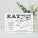 diseño de rsvp bodas con diseño tipográfico moderno en blanco y negro "come y se casa. Si necesitas más para incluir más opciones como "cualquier requerimiento dietético" etc por favor contáctame.