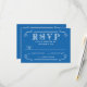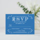 Coma, bebe y cásate — Cartas de respuesta RSVP personalizadas por invitación rústica a una boda campestre de estilo vintage — Deslizamientos rápidos y ondulados y tipografía de madera de moda antigua en un deslumbrante texto blanco sobre el fondo azul ultramarino del Océano Pacífico. Añade los nombres de la novia y del novio y las fechas de respuesta en esta plantilla fácil de usar. El estilo elegante pero divertido y caprichoso, retro, escrito a mano, se puede modificar fácilmente para los temas formales o semiformales del boda. El moderno estilo rústico contemporáneo resulta perfecto para los bodas rústicos de moda con un toque divertido y sofisticado para las parejas tradicionales. Póngase en contacto con nosotros para obtener ayuda sobre la personalización si necesita más espacio para los detalles de su boda. Otros tamaños y estilos disponibles, además de invitaciones a juego, sellos postales, accesorios de coordinación y favores de ducha.