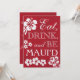 Esta invitación de boda de destino dice "Coma, bebe y sé malauí" en la parte delantera. Es un giro en el popular "Come, bebe y cásate". El diseño tiene un fondo rojo con una marca de agua floral tropical. Los hibiscos blancos y las flores tropicales de la playa acentúan la redacción. La parte trasera tiene mucho espacio para los detalles de su boda. Si necesitas ayuda para personalizar o si quieres una combinación de colores que no veas en mi tienda, simplemente envíame tu solicitud.