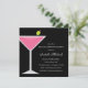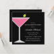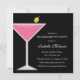 Este diseño presenta un martini rosa bonito con una aceituna verde a la izquierda y detalles fiestas a la derecha en blanco.