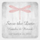 Elegante y simple Boda Salven a los Pegatinas de Date con una libélula rosada contra un fondo gris. Este diseño es una elección única para anunciar un boda moderno. Fácil de personalizar con los detalles de su boda. Haga clic en "Personalizar" para encontrar más opciones de personalización.