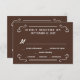 Coma, bebe y cásate — Cartas de respuesta RSVP personalizadas por invitación rústica a una boda campestre de estilo vintage — Deslizamientos rápidos y rizados y tipografía de madera de moda antigua en blanco radiante sobre fondo moreno de chocolate caliente. Añade los nombres de la novia y del novio y las fechas de respuesta en esta plantilla fácil de usar. El estilo elegante pero divertido y caprichoso, retro, escrito a mano, se puede modificar fácilmente para los temas formales o semiformales del boda. El moderno estilo rústico contemporáneo resulta perfecto para los bodas rústicos de moda con un toque divertido y sofisticado para las parejas tradicionales. Póngase en contacto con nosotros para obtener ayuda sobre la personalización si necesita más espacio para los detalles de su boda. Otros tamaños y estilos disponibles, además de invitaciones a juego, sellos postales, accesorios de coordinación y favores de ducha.