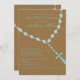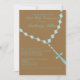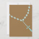Comienza tu celebración con la invitación a la Primera Comunión de tu hijo. Está colocado sobre un fondo marrón con unas cuentas rosadas azules, delicadas y con aspecto de cristal colgadas de esta invitación. Personalice la información de su fiesta.