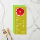 Una plantilla de menú colorida y linda para un bar de bebidas, bar de jugos, tienda de frutas o tienda de alimentos saludables. Este menú lindo tiene una ilustración de arte original adorable de Sacha Grossel de una rodaja de toronja con un tema cítrico contra un fondo personalizable verde lima y amarillo. El texto se puede personalizar para adaptarse a sus necesidades.
