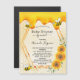 Un divertido imán de verano ducha de bebé por invitación del correo. Un fondo amarillo con un patrón de peine de miel. Con un marco geométrico de oro falso y goteo de miel dulce. Decorada con girasoles amarillos y naranjas y abejas felices. Una pequeña abeja está cargando un sobre. Con el texto: Baby Shower por correo. Personalice y agregue el nombre de la madre para que sea escrita con un guión moderno de estilo con letras a mano. Cartas negras. También puede utilizarse como recordatorio de fecha para guardar a sus invitados. Parte posterior: patrón amarillo de abeja, diseño postal. Sugerencia: Si no desea que se vea como una postal, haga clic en personalizar, vaya a la parte posterior y quite el separador y el sello postal.