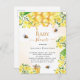 Un elegante fondo blanco y dorado de color agua. Decorada con abejas de burbujas, fusión de miel y peine de miel con flores amarillas, flores y un tarro de miel. Con el texto: Baby Shower escrito con una escritura de estilo con letras a mano moderna. Personalice y agregue el nombre de la madre a la abeja. Letras doradas y negras. Neutralidad de género. Atrás: diseño postal. Sugerencia: Si no desea que se vea como una postal, haga clic en personalizar, vaya a la parte posterior y quite el separador y el sello postal.