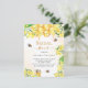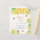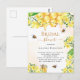 Un elegante fondo blanco y dorado de color agua. Decorada con abejas de burbujas, fusión de miel y peine de miel con flores amarillas, flores y un tarro de miel. Con el texto: Bridal Shower escrita con un guión moderno de estilo con letras a mano. Personalice y agregue el nombre de la novia a la abeja. Letras doradas y negras. Atrás: diseño postal. Sugerencia: Si no desea que se vea como una postal, haga clic en personalizar, vaya a la parte posterior y quite el separador y el sello postal.