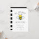 Invitación divertida y conmovedora con una abeja adorable con el bonito dicho "Be Our Guest" (Sé nuestro invitado) colocado en un fondo blanco. Girar nuestra nueva tarjeta de dirección para ver un fondo de banda blanca y negra de coordinación.