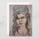 Un chica con peinado de colmena caminando por la calle desde un dibujo original de un lápiz de color