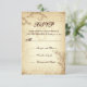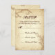 Tarjeta RSVP de boda de la hoja de pergamino de color beige marrón, con elegantes rollos de hojas en color marrón sobre fondo marrón y beige.