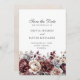 Anuncie su gran día en un estilo atemporal con esta floral de color beige Save the Date. La parte delantera está decorada con una romántica acuarela en tonos suaves, burdeos y marfil, mientras que la suave textura de color beige de la parte trasera aporta un toque cálido y minimalista. Esta tarjeta es perfecta para las parejas que aman la elegancia natural con un toque bohemio moderno. Personalizable total para adecuarse a los detalles de su boda, este diseño Save the Date es ideal para bodas de inspiración rústica, neutra o de otoño. Póngalo en pareja con la invitación y la papelería boda para crear una suite boda cohesiva y sofisticada.