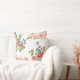 Una bonita almohada cuadrada beige de elegante estampado floral en un estilo sutil y suave, con delicadas flores de inspiración artesanal en tonos blancos cremosos, rosa pálido y verduras mullidas, todo ello rodeado de un cálido y confortable entorno beige, con pétalos y tallos de forma orgánica y suaves que evocan una sensación de elegancia y refinamiento clásicos. Un ambiente tranquilo y sereno, con una ligera textura visible en la superficie de la almohada, y un escudo sutil que sugiere un material lujoso y de alta calidad.