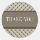 Fancy Lattice Gracias Pegatinas de moda y moda con un elegante círculo y un patrón de rombo sobre un vibrante fondo beige de espuma de marea con un amplio borde marrón de dos tonos. Estos elegantes pegatinas de agradecimiento son perfectos para un boda moderno. Fácil de personalizar, simplemente añada el texto personalizado de su elección. Haga clic en "Personalizar" para encontrar más opciones de personalización.