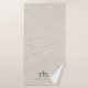 Simple elegant bath towel featuring a beige linen creme texture and personalized monogram design, perfect for adding a chic luxury touch to your bathroom decor. This customizable towel makes a thoughtful gift for weddings, housewarmings, or everyday use, with a timeless neutral aesthetic that complements any style.