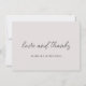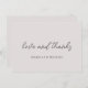 Personalizable boda Gracias tarjeta. Presentando Amor y Gracias en escritura con fuente gris en un fondo beige. Con un mensaje de personalizable al revés.