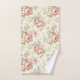 Hermoso fondo crema beige con flores azules y rosadas y vegetación en estilo shabby chic en este juego de toallas de baño. El juego incluye toalla de mano, paño de lavado y toalla de baño. Se vende como juego o por separado.