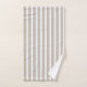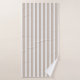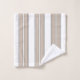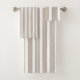 El conjunto de toallas de baño es de rayas beiges y blancas.