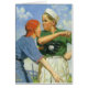 Ilustración antigua de niños practicando deportes con dos niños (árbitro y receptor) jugando béisbol y teniendo un desacuerdo. ¡Los niños están discutiendo sobre si un jugador estaba a salvo o fuera!