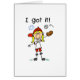 La figura jugador de béisbol del palillo del chica en un uniforme y una gorra de béisbol rojos coge la bola en su guante y el texto me lee "lo consiguió!". ¡Si usted ama figuras del béisbol y del palillo usted amará este lindo diseña!