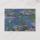 Bonita carta de invitación a la boda, hecha con la magnífica pintura de arte de Water Lilies de Monet como fondo. Gráficos de un área de texto de color blanco transparente y dorado, en el frente. El texto negro y azul está listo para el personalizar para su boda.
