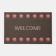 Hermosas rosas rosas rosas en marrón dan la bienvenida a un gran felpudo. El texto de bienvenida se puede personalizar.