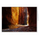 El paisaje en el Parque Nacional de Zion es increíble y asombroso. Una excursión favorita se llama "The Narrows", donde las almas aventureras caminan por varios kilómetros en las aguas del río Virgen. ¡Qué paisaje increíble y único que ven a lo largo del camino! Foto original de Alan Socolik. La tarjeta está en blanco en el interior, por lo que se puede usar para cualquier ocasión o enmarcado (5" x 7"). En el interior, arriba y abajo, hay un color marfil pálido. Todos los derechos reservados © 2015 Alan & Marcia Socolik.