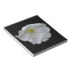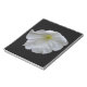 Este impresionante bloc de notas muestra una asombrosamente bella foto de una flor petunia blanca ambientada en un fondo negro para producir un fascinante contraste.
