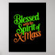 Un diseño con temática de Navidades con las palabras "Bendito con el espíritu de la masa X" mostradas en un tipo de letra estilizada. El texto es blanco y naranja, con un efecto angustiado, sobre un fondo gris claro.