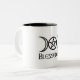 La taza estándar del café 11oz/del té con la diosa triple y bendecida se escriba debajo. Colorante externo de cerámica blanco con la escritura interior y negra negra.
