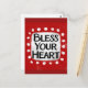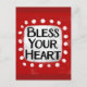 "Bendiga su corazón" es un lindo diseño de texto en rojo con texto negro, junto con una forma de acento blanco y puntos caprichosos de textura blanca que lo rodean.