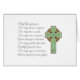 Cruz celta y texto de bendición irlandesa "Que Dios te dé... Por cada tormenta un arco iris, por cada lágrima una sonrisa, por cada preocupación una promesa y una bendición en cada juicio. Por cada problema que la vida manda, un amigo fiel que compartir, por cada suspiro, una dulce canción y una respuesta por cada oración.