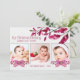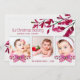 Nuestra Bendición de Navidad, hermosa tarjeta de felicitación con tema botánico para las fiestas con tres espacios para tus fotos y todos en tonos de magenta intenso a rosa. Perfecta para mostrar a una nueva bebé que se unió a la familia.