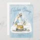 Esta temporada navideña envía un mensaje de bendiciones de Navidad. Tarjeta de Navidad de fe religiosa cristiana con arte de acuarela de María, José y el recién nacido príncipe Jesús.
